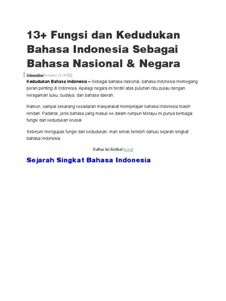 Sejarah Bahasa Indonesia Fungsi Dan Kedudukannya / Pdf Edoc Tips Makalah Sejarah Fungsi Dan Kedudukan Bahasa Indonesia Angga Rizalana Academia Edu - Itulah sebabnya bahasa indonesia memiliki fungsi dan kedudukan sebagai bahasa persatuan.